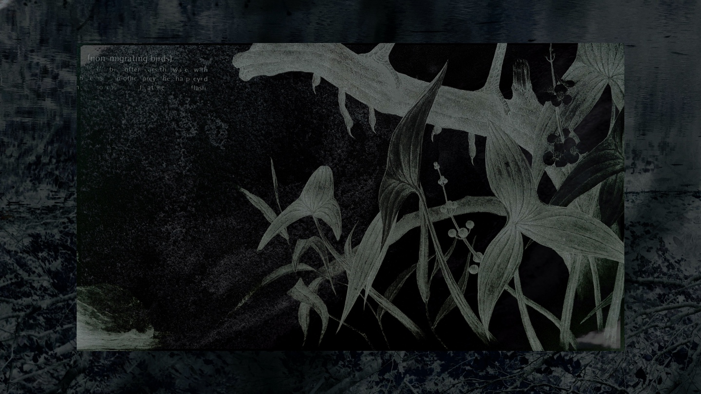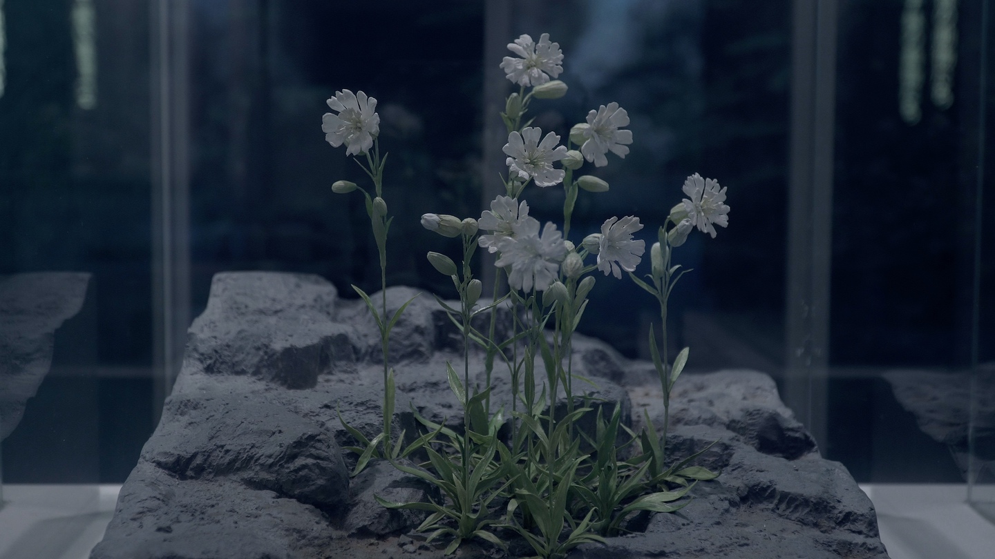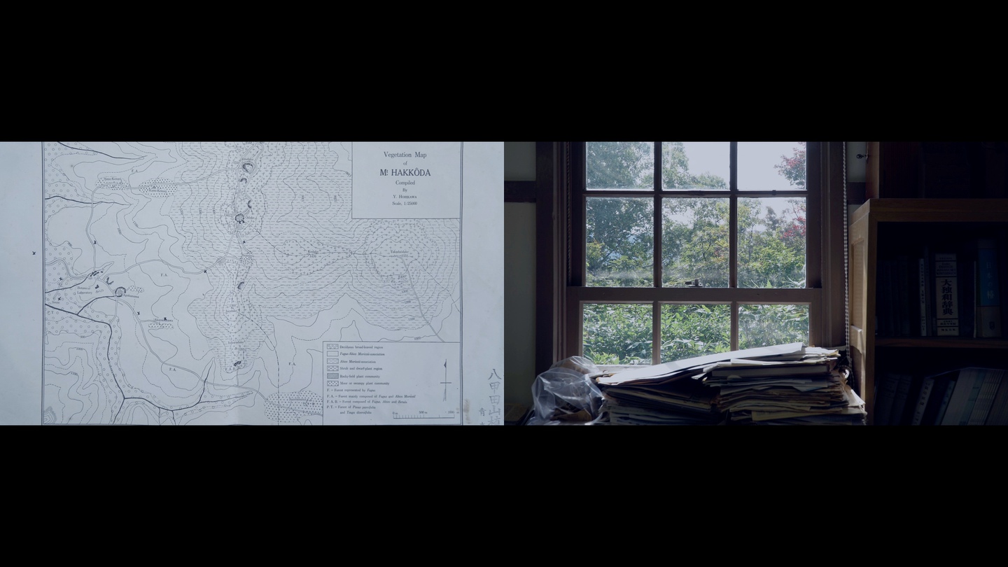 The video used in the performance primarily consists of landscapes and vegetation from various parts of Aomori, which are sites of Kooriba's fieldwork and research, including Mount Hakkoda and Shirakami. It also features footage of plant specimens collected by Kooriba himself, stored at the Mt. Hakkoda Botanical Garden of Tohoku University.